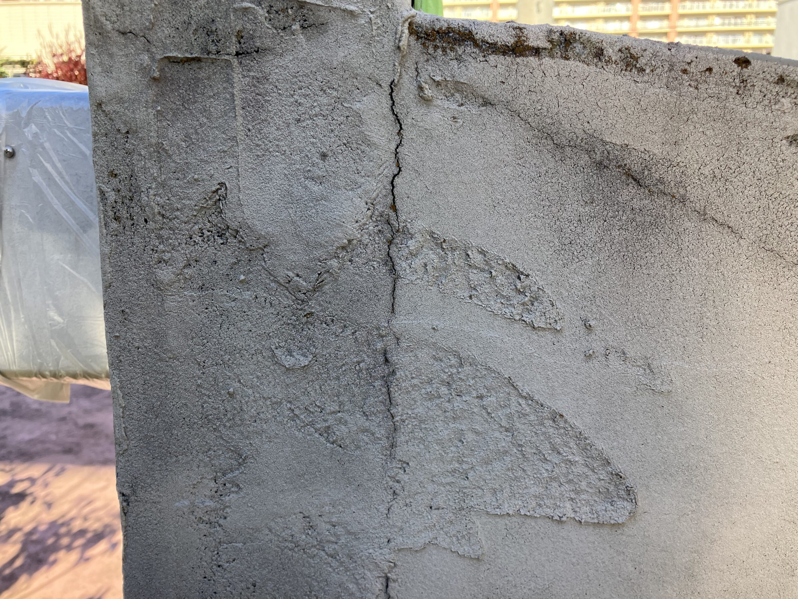 一方で、幅が広いひび割れや、触ると内部で空洞感がある場合は注意が必要です。